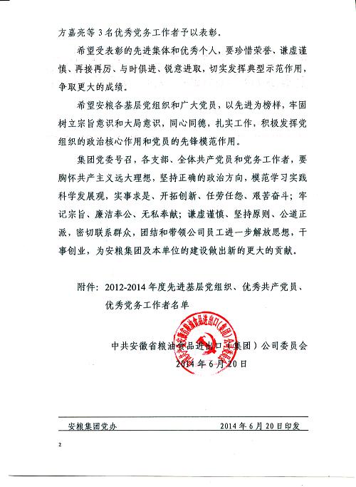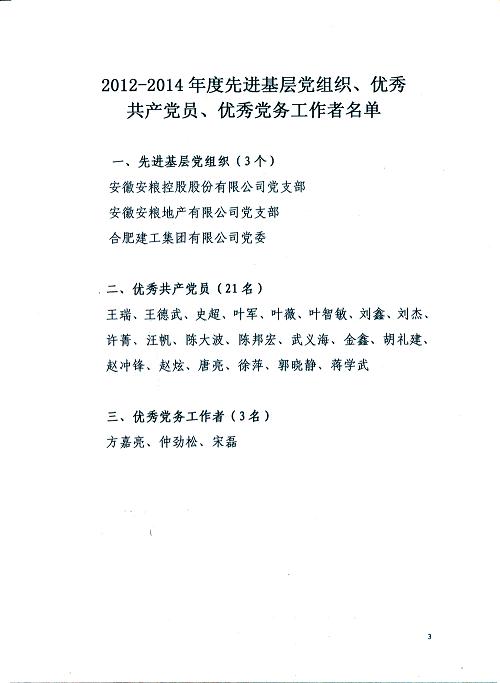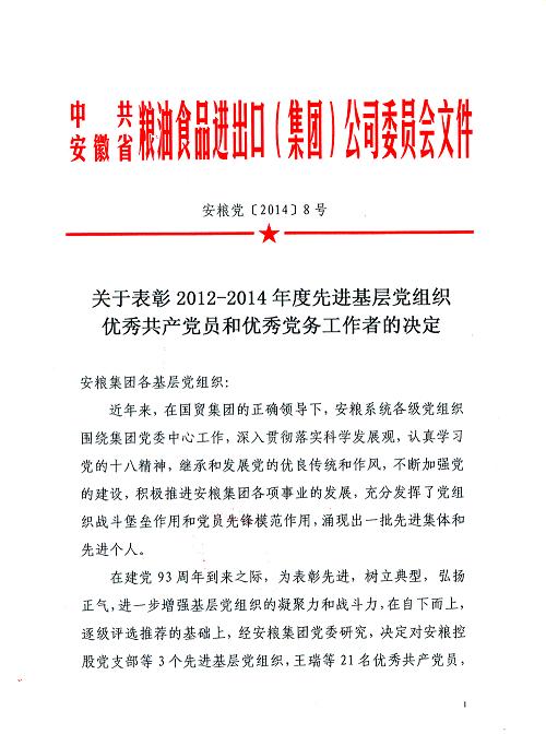 關于表彰2012-2014年度先進基層黨組織 優秀共產黨員 優秀黨務工作者的決定