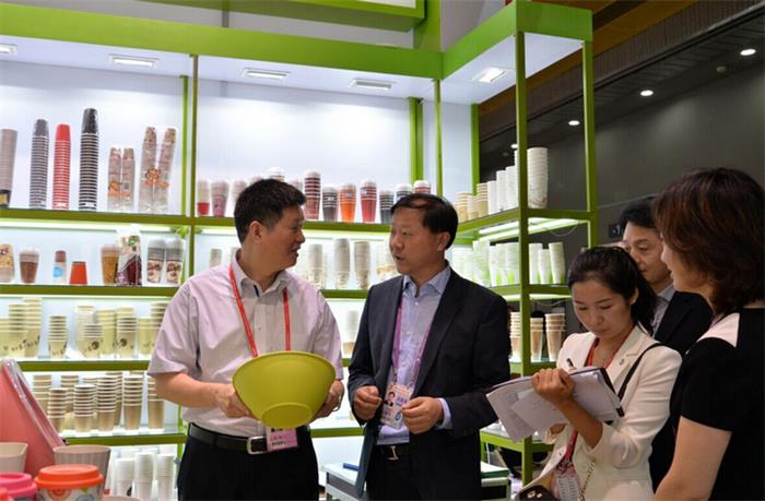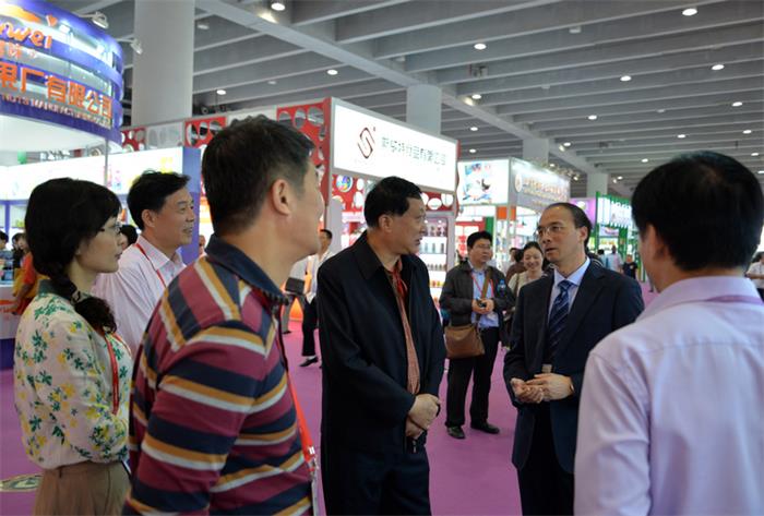 省商務廳張箭廳長(左一)巡視安糧控股展位