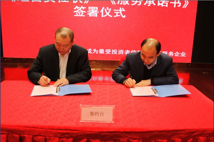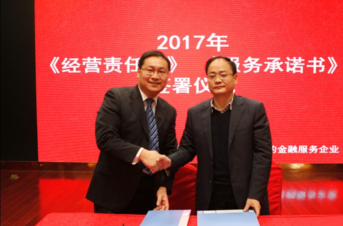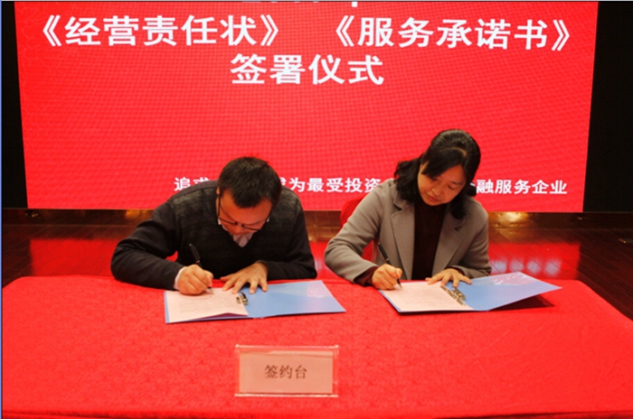 隨后,公司領導與各業務部門及金財匯頂子公司簽署了《2017年度經營目標責任書》,與各中后臺及創新業務部門簽署了《2017年度服務承諾書》。