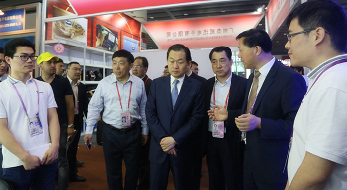 4月16日,第121屆廣交會第一期進入第二個展出日。上午9點半,張曙光副省長在省政府副秘書長趙振華、省商務廳廳長張箭、省出入境檢驗檢疫局局長呂小斌等陪同下,視察了安糧電子消費品及信息產品品牌展展位。安糧控股副總裁曹訓立接待了張副省長一行。