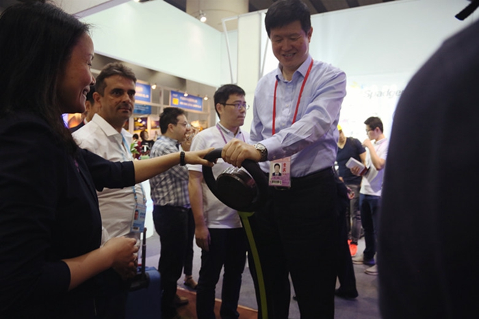 張副省長一行領導詳細詢問了安糧進出口業務經營發展狀況,并對現場展出的安糧自主品牌——Spadger(賓雀)品牌平衡車、電動滑板車等出口新產品產生了濃厚興趣。省商務廳張箭廳長還親自體驗了展位熱點產品——Spadger(賓雀)平衡車的駕駛樂趣。