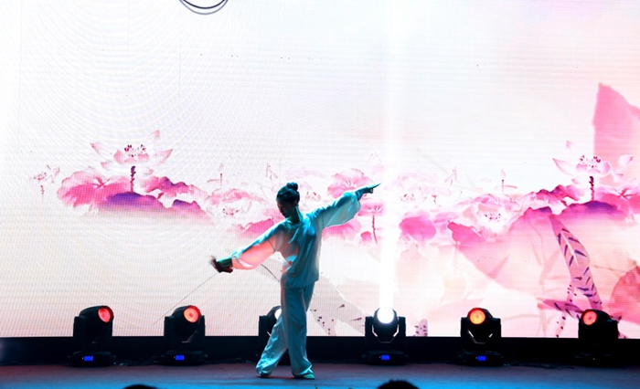 才藝展示環節,選手們拿十八般武藝,各顯其能。一身素衣、文劍配身的王毓薇似仙子臨凡,在水墨丹青的畫卷中,挑云撥霧,仙姿綽約;李雨馨如青蓮婉出,纖指弄弦,撥一曲《酒狂》,古琴雅韻傳新聲;而有著溫柔端莊主持風格的宣麗萍,意外地用充滿異域風情的肚皮舞,給我們展示了多才和熱辣的一面。
