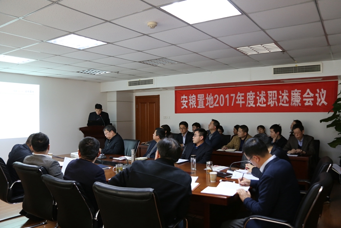 2017年是安糧置地穩步發展,開拓創新的一年,述職述廉會上,置地本部中高層管理人員、及項目公司高層管理人員分別匯報了各自在2017年的履職情況、廉潔自律情況、存在的不足與改進措施及對2018年的工作思考。