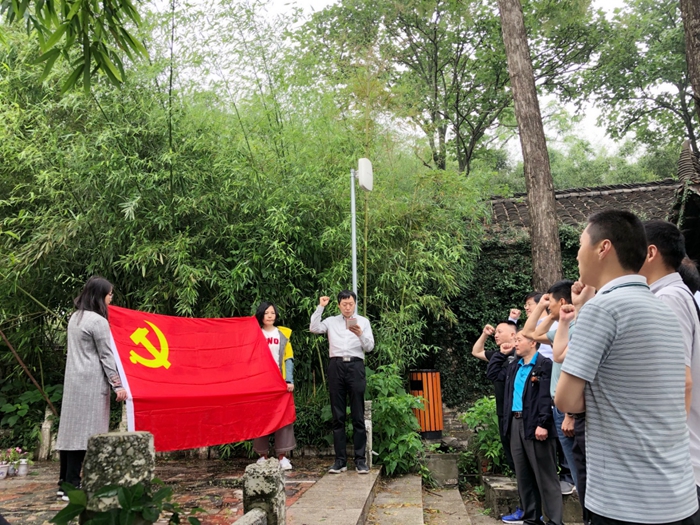 在“百萬雄師渡江第一船登陸點”紀念碑前,大家共同緬懷“渡江第一船”勇士,并面對黨旗重溫入黨誓詞,時刻牢記作為一名黨員的政治責任和歷史使命,不斷保持共產黨員的先進性。
