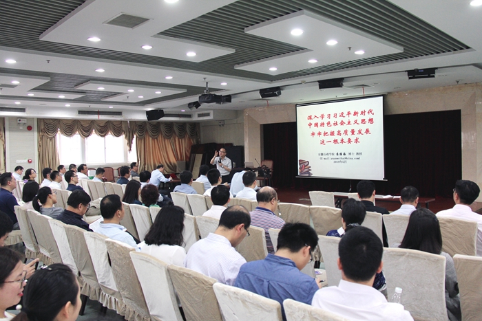 本次報(bào)告會(huì)邀請了安徽省行政學(xué)院黨委委員、副院長袁維海教授主講。袁教授圍繞新時(shí)代、新征程、新矛盾、新方略、新舉措、新要求六個(gè)方面的內(nèi)容,深入闡釋了習(xí)近平新時(shí)代中國特色社會(huì)主義思想的深刻內(nèi)涵。他通過用大量實(shí)例和經(jīng)濟(jì)數(shù)據(jù)作支撐,結(jié)合中國經(jīng)濟(jì)已從高速增長轉(zhuǎn)向高質(zhì)量發(fā)展并正處于轉(zhuǎn)變發(fā)展方式、優(yōu)化經(jīng)濟(jì)結(jié)構(gòu)、轉(zhuǎn)換增長動(dòng)力的攻關(guān)期,全面解讀了黨的十九大報(bào)告。其中,對深刻領(lǐng)會(huì)新常態(tài)時(shí)代這個(gè)發(fā)展邏輯進(jìn)行了系統(tǒng)闡述和深入分析,觀點(diǎn)獨(dú)到,給人啟迪,對各單位進(jìn)一步深入貫徹落實(shí)黨的十九大精神,推動(dòng)安糧集團(tuán)改革發(fā)展起到了積極作用。