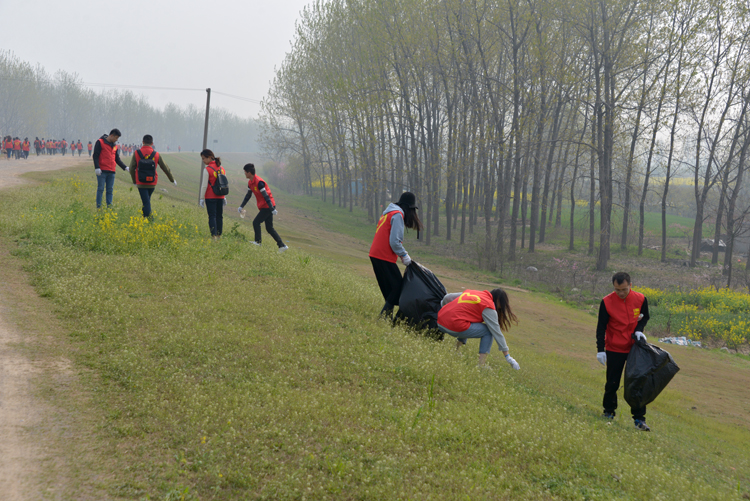 本次環保毅行路線全長7.2公里,全體人員被分為13個小組,每個小組承包約500米路段的垃圾清理工作。在每組組長的帶領下,團員青年們積極行動,不遺余力地對沿途白色垃圾展開“地毯式”搜尋。經過大家近三個小時的共同努力,毅行所經大堤上煥然一新。通過這次行動,團員青年們為保護淮河生態環境盡自己的一份力,更是體會到“綠水青山就是金山銀山”的意義。