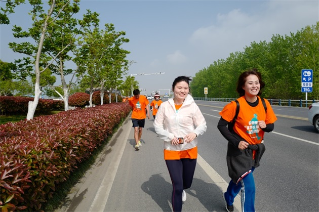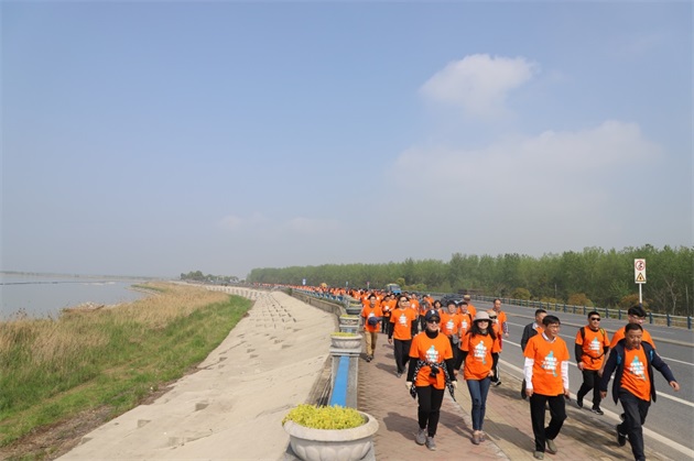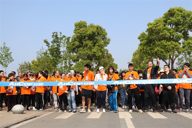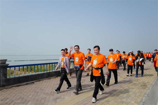 一路上,統一著裝的毅行隊伍如一股橙色的春潮,激蕩在碧波萬頃、楊柳接岸的巢湖之濱。伴著融融春日,吹著習習微風,毅行隊伍一邊暢享行走的樂趣,一邊欣賞大美巢湖的秀麗春色,一邊笑談工作或生活的點滴。上午10點5分,來自安糧實業的薛寶第一個沖破終點線,隨后,其他毅行者也陸續抵達終點。大家在留言墻上簽名并合影留念,一張張笑臉洋溢著成功的喜悅。