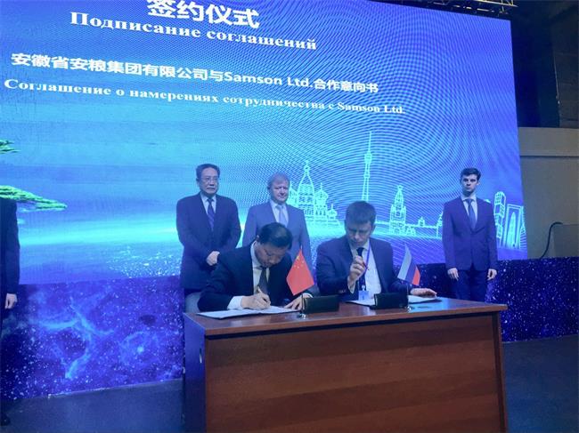簽約儀式上,曹訓(xùn)立董事長(zhǎng)代表安糧集團(tuán)與俄羅斯知名連鎖超市Samson Ltd.代表 Ilya Chekanov 先生簽署了雙方在深化合作擴(kuò)大貿(mào)易額、電商業(yè)務(wù)的拓展以及Samson公司為安糧集團(tuán)橋接當(dāng)?shù)刭Y源向中國(guó)進(jìn)口的戰(zhàn)略合作意向書。