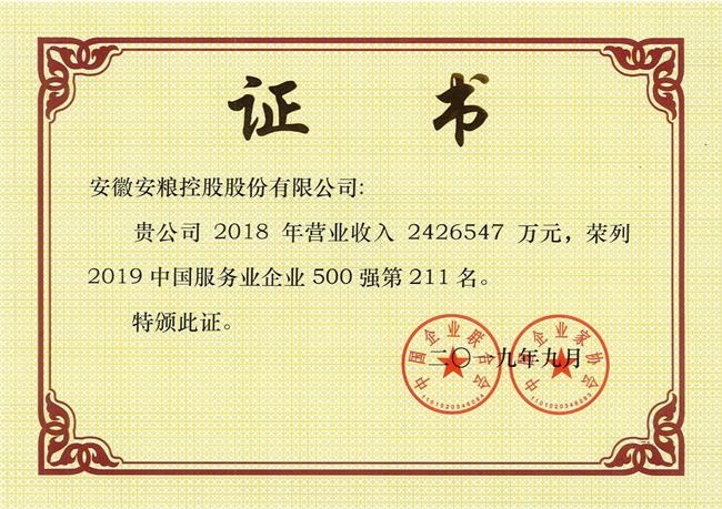 安糧控股位列2019中國服務業企業500強第211位