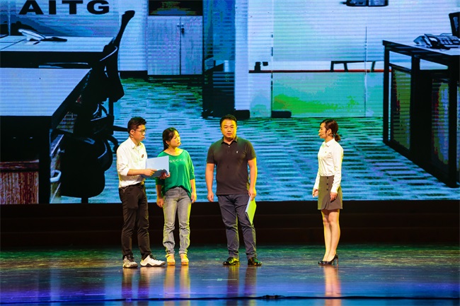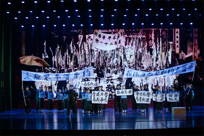 情景劇《使命的接力》分為四個篇章,前三個篇章以五四運動、抗日戰爭、新中國成立以及改革開放等重要時間節點為背景,節選具有鮮明時代烙印的畫面,講述了一百年來中國人民的民族氣節和不屈不饒的奮斗歷程;最后一個篇章則回歸到當下外貿工作中的一個真實場景,描述了新時代國貿人接過前輩的接力棒,不忘初心、牢記使命,在一次次的磨礪中不斷成長,立志為中華民族偉大復興貢獻力量的動人故事。