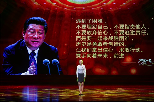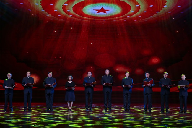 此外,本次演出國貿集團黨委書記、董事長范陽還率國貿領導班子與安糧集團黨委書記、董事長曹訓立等各主要成員企業負責人,共同為大家奉獻了一首情真意切的配樂詩朗誦《國貿禮贊》。