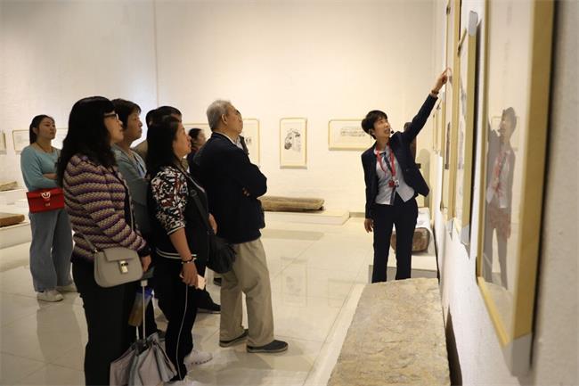 博物館內青墻黛瓦、翹角飛檐,處處展示著徽州文化的獨特魅力。在講解員的帶領下,大家先后參觀了徽派石雕瑞獸展廳、古徽州木雕展廳、石刻人物造像展廳、百匾堂展廳等地方。一棟棟矗立于展區“無夢園”中的清代老宅給了大家視覺上的直接震撼,館中的民俗用品更將大家帶回了往昔的時光。
