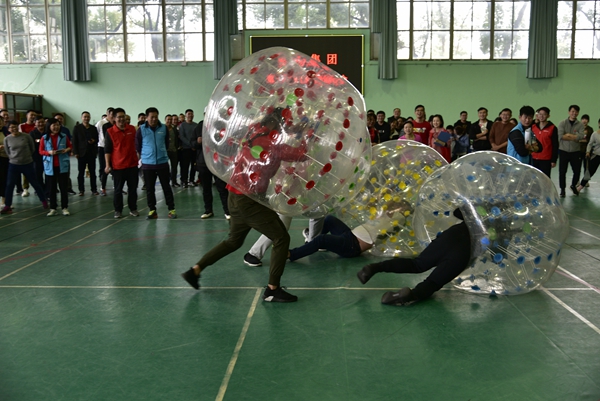 簡短的開幕式后,十二個比賽項目輪番上演,比賽場迅速變成了一片歡樂的海洋。“九人十足”項目率先登場,較之上屆的“五人六足”可謂“更快、更強”,安糧期貨一馬當先;“摸石過河”接踵而至,安糧期貨熊青寶協調迅捷,強勢衛冕;“跳大繩”此番桂冠易主,安糧期貨又下一城;“夾乒乓球”同時考驗“筷子”和“乒乓球”兩項“國技”,集團紀委孫毅書記“一箭三雕”驚艷全場;“滾雪球”頗有田忌賽馬的謀略比拼,安糧實業技高一籌。拔河比賽壓軸登場,合肥建工“強漢”如林,包攬三甲。全天比賽結束,安糧期貨以5枚團體項目金牌和3枚個人項目金牌,成為本屆趣味運動會的最大贏家。