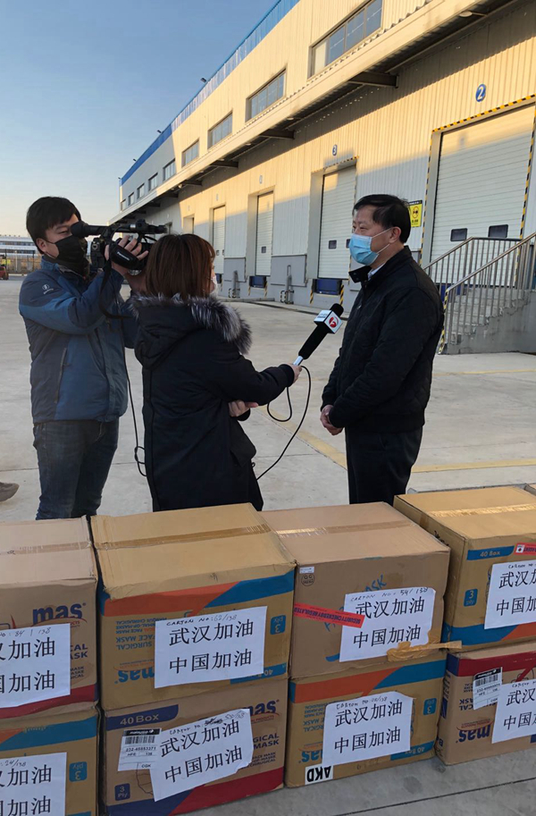 這批口罩除了供給公司及國貿系統各單位復工自用外,還可以向外界捐贈不低于15萬只。當天下午,安醫二附院黨委書記姚文兵和安糧的同志們,一道趕到新橋機場親自迎接這批漂洋過海、跨過千山萬水的海外救援物資。聞訊趕來的安徽電視臺采訪并見證了此批貨物的抵達,現場連線采訪了印尼的陳明祥老先生。
