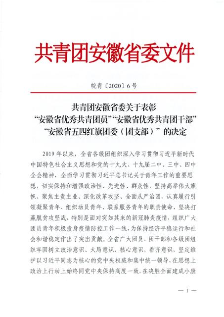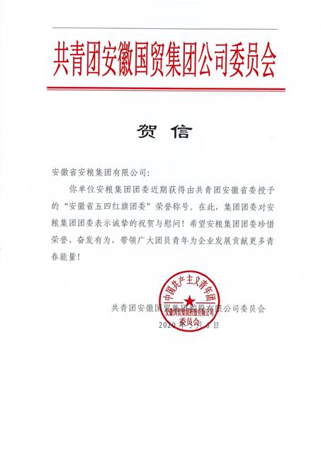“安徽省五四紅旗團委”是團省委授予全省基層團組織的最高榮譽,是對新形勢下基層共青團工作的重要表彰,安糧集團團委也成為國貿集團范圍內首次獲此殊榮的團組織。