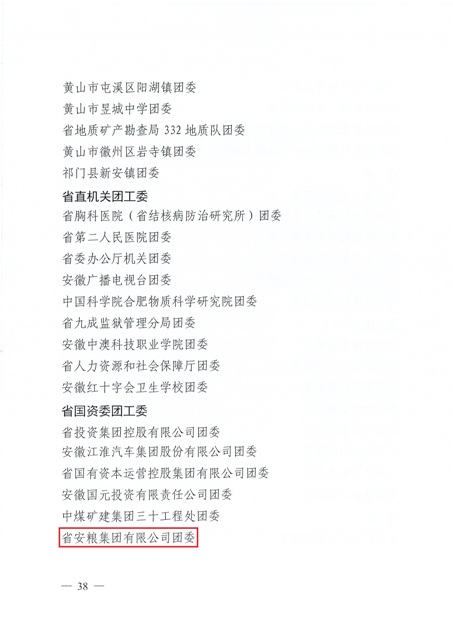 安糧集團團委榮獲“安徽省五四紅旗團委”稱號
