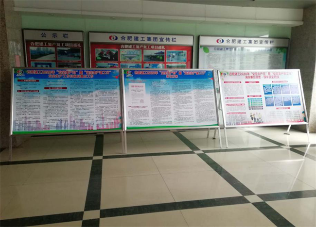 為切實增強全員安全生產意識和提升全員安全素質,合肥建工制作了“安全生產月”暨“安全生產建工行”宣傳展板在本部一樓大廳進行宣傳展示,各項目部在工程顯著位置張貼、懸掛“安全生產月”宣傳標語、橫幅、掛圖等,同時利用 LED 屏宣傳,在LED電子顯示屏上持續滾動播放安全公益廣告等,積極營造關心安全生產、參與安全發展的濃厚輿論氛圍。