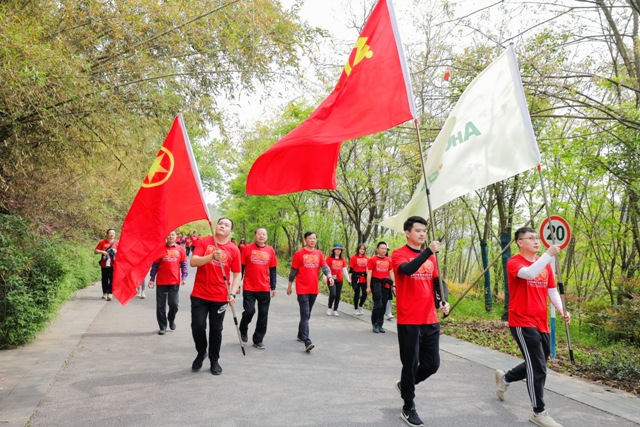 桃李爭妍、山河錦繡,500名安糧員工在鮮紅的黨旗引領下,身著印有黨史學習教育主題LOGO的統(tǒng)一服裝,飽含初心與熱忱,懷揣夢想與希望,一步一個腳印,用鏗鏘的步伐丈量7.1公里的毅行之路;一站一站接力,用掃碼答題的方式回首百年黨史之路;一路攜手同行,用笑聲點綴山林,用自信和堅持點亮追夢之路,闊步踏上奮進“十四五”、推動高質(zhì)量發(fā)展的新征程。