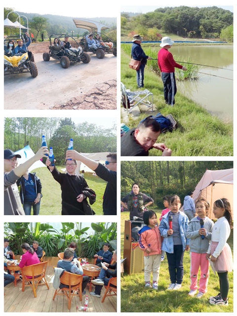 出行當天,天氣格外晴朗,久違的燦爛陽光一掃連日來的陰霾。大家沐浴著秋日暖陽,徜徉在湖邊小路,穿梭于山水之間,一路觀景,一路說笑,分享著工作之余親近自然的輕松與愜意。園區精心準備了卡丁車、小火車、叢林穿越、彩虹滑道、水上泛舟、戶外垂釣、大鍋灶等休閑項目,午餐后的戶外帳篷派對更是別開生面。大家在娛樂互動中放松身心、樂享天趣,拉近彼此距離,增進友誼的溫度,并用相機定格歡樂的瞬間,短暫的活動愉悅了身心,也為更好地工作注入了滿滿的能量。