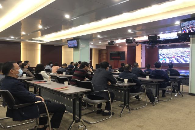 當天上午,在安糧中心3208會議室內,安糧集團黨委書記曹訓立等黨委委員,團委委員,集團、控股支部黨員,部門負責人以及子公司黨員領導干部、統戰人員代表集中收看了開幕直播盛況,同志們聚精會神地聽、專心致志地記,仿佛置身于大會現場。