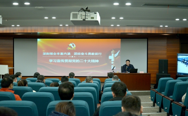 何汝才書記為安糧國際50余名黨員作了“深刻領會豐富內涵 團結奮斗勇毅前行——學習宣傳貫徹黨的二十大精神”主題宣講。 他從深刻領會黨的二十大會議的重要意義、精神實質、弘揚偉大建黨精神、深刻領會以中國式現代化推進中華民族偉大復興的歷史重任等四個方面系統、深入地解讀了黨的二十大精神重大意義、主題內涵及核心內容,并結合海螺集團、安徽國貿的發展對所有黨員干部作出要求。他強調,學習宣傳貫徹黨的二十大精神是公司當前和今后一個時期的重大政治任務,要深刻領會黨的二十大報告對堅定不移全面從嚴治黨、深入推進新時代黨的建設偉大工程作出的重要部署;要堅持學思用貫通,聚焦主責主業,堅持高質量發展,切實把黨的二十大精神落實到各項具體工作和實際行動中,展現更大擔當作為,為海螺集團“爭創世界一流企業”貢獻更大力量。