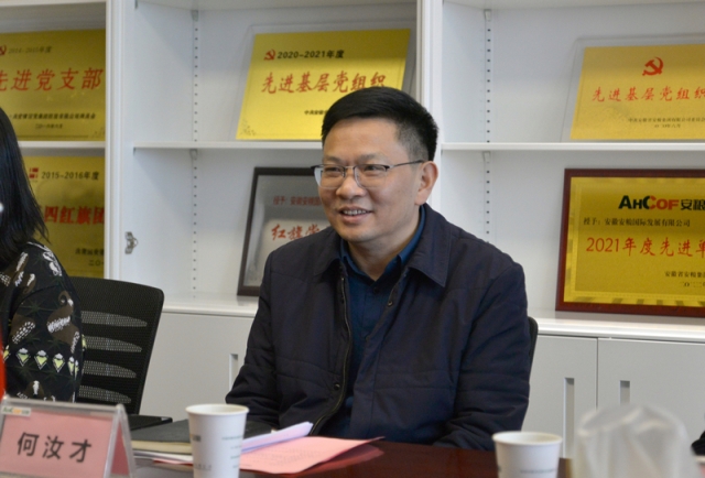 調研座談會上,何汝才聽取了安糧國際董事長朱亮有關公司黨建與經營工作的匯報,并就公司業務發展、黨建經營融合、制度完善落實和內控風險管理等方面與安糧國際相關領導,安糧國際黨總支及各支部委員,團員青年代表,統戰對象代表,公司業務骨干和職工代表等座談。傾聽有關意見和建議。