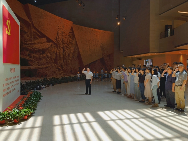 黨員們懷著崇高的敬意,傾聽革命先烈的偉大事跡,瞻仰實(shí)物文獻(xiàn),追憶波瀾壯闊的歷史,感受這場(chǎng)軍民團(tuán)結(jié)一心的偉大勝利和永垂不朽的戰(zhàn)役精神。“渡江戰(zhàn)役的勝利是靠老百姓用小船劃出來的。”習(xí)近平總書記在2020年考察安徽時(shí)語重心長地說:“任何時(shí)候我們都要不忘初心、牢記使命,都不能忘了人民這個(gè)根,永遠(yuǎn)做忠誠的人民服務(wù)員。”隨后,安糧實(shí)業(yè)的黨員們面向鮮紅的中國共產(chǎn)黨黨旗,高舉右拳,重溫入黨誓詞,鏗鏘有力的誓言回蕩大廳、激蕩人心,將不變的初心與使命鐫刻于心。