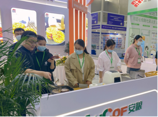 安糧實業受邀參與本次展會,主要展示產品是我司的預制菜產品。我司產品在不斷發展更新的同時,更加注重徽菜品種的創新,味道研發和品牌開拓,不斷擴展知名度。比如本次展出的產品主要是:主創品牌田田屋的產品,例如米蘭蝦餅,魷魚藕餅,玉米烙,大福,山芋仔,黃金薯條以及臭鱖魚等,這些產品都是我司在預制菜行業多年匠心研究與開創出的優質品類,在本次展會中吸引了大批專業客戶駐足品嘗,客戶們都積極與我司參展人員進行溝通交流,并表現出強烈的合作意向。