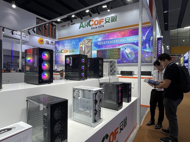 南方一部在本屆廣交會一期主要參展游戲電腦機箱產品,從入門級到高端游戲機箱齊全。部門在營銷展示上采用一系列新穎的形式,展臺的主通道采用目前比較流行的魚缸游戲機箱作為看點,用可藍牙連接手機和電腦的高端游戲機箱吸引客戶。為了突出參展效果,所有游戲機箱都裝上了RGB變色風扇。多樣化的變色風扇與南方二部的機械鍵盤吸引了大量客戶駐足觀看。消費電子展6個攤位,突出游戲類產品的裝修風格,搭配大氣的門頭、顯眼的海報燈箱,使客戶在進館時只需一眼就能夠鎖定目光。