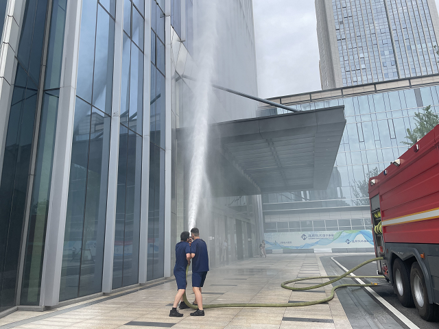 6月24日下午3時,消防應急演練總指揮下達演練開始指令。隨著煙霧彈在辦公樓內拋擲,煙霧觸發安糧中心辦公樓火警警報,頓時消防警報和消防警鈴響起。隨后各小組迅速按照部署展開滅火救援行動,消防和應急救援隊員有序引導員工緊急疏散撤離至避難層,緊接著包河區應急救援大隊消防救援車輛到達現場,開展了火情偵查、外圍滅火等系列滅火救援行動。整個演練過程中,各小組配合默契、分工有序,圓滿完成了緊急報警、警戒疏散、醫療救護和滅火救援等演練環節,及時排除了火災險情,有效達到了演練目的和預期效果。