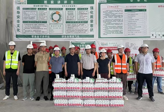 炎炎夏日,酷暑高溫,為切實做好職工夏季防暑降溫工作,用心用情關愛一線職工,8月2日,安糧集團工會開展“關愛職工,夏送清涼”活動,工會主席周洪帶隊來到安糧建設項目工地,對在高溫條件下作業的職工進行慰問,為奮戰在酷暑一線的工作人員送清涼、送關懷。