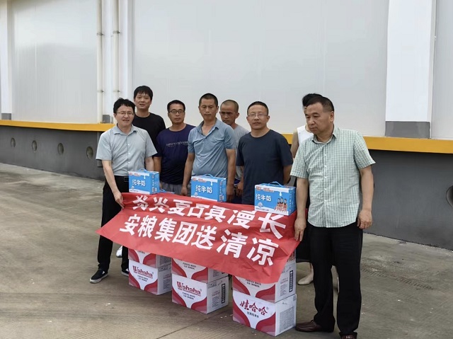 入夏以來,安徽多地開啟高溫模式,安糧實業(yè)于7-8月開展了“夏日送清涼”活動,慰問下屬工廠奮斗在一線的員工們,將防暑降溫物資送到基層員工手中,為高溫酷暑下堅守生產(chǎn)一線的員工撐起“遮陽傘”。