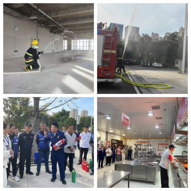 下午3時,消防應急演練總指揮下達演練開始指令。工作人員在預定地點放置煙霧彈,觸發火災報警,模擬火情發生場景。安糧中心辦公樓火警警報鳴響,全體職工迅速進入緊急疏散狀態,各樓層消防和應急救援隊員迅速反應,有序引導職工從安全出口撤離到避難層。同時,消防隊員全副武裝,封控火場、撲滅火災。在火警解除后,救援大隊隊員開展滅火器使用教學、油鍋起火的預防和撲救等內容,參與演習的物業、餐飲安全員們分別用不同的方式進行滅火實操,切身感受了正解與錯誤滅火的后果。