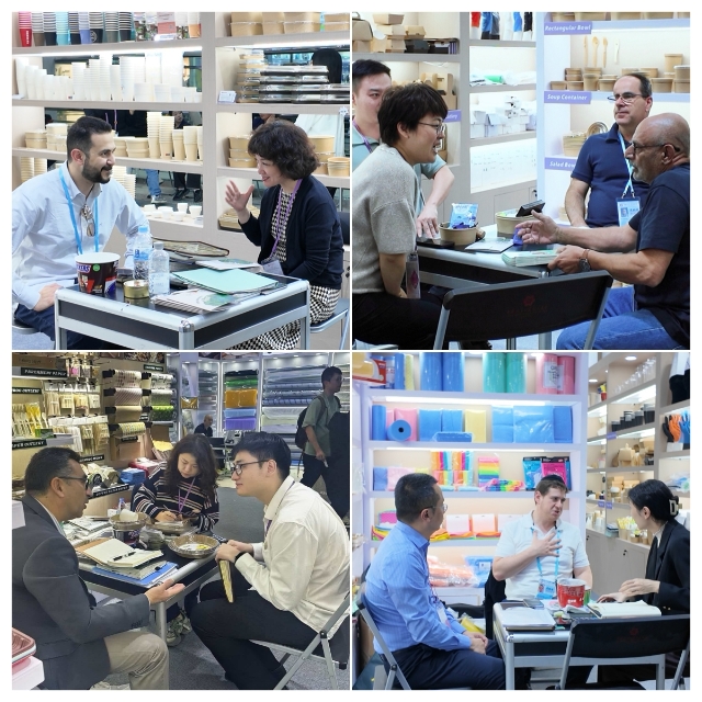 在家居展區(qū),開(kāi)展首日便迎來(lái)一大波客戶(hù)咨詢(xún)。依托安糧20余年深耕一次性餐廚制品領(lǐng)域的專(zhuān)業(yè)積淀與行業(yè)洞察力,本次重點(diǎn)首發(fā)的紙質(zhì)水果盒、紙制刀叉餐具等創(chuàng)新產(chǎn)品,憑借獨(dú)特的差異化設(shè)計(jì)迅速成為全場(chǎng)焦點(diǎn)之一。此外,展區(qū)同步展出的紙制品、全新塑料制品、竹木制品以及無(wú)紡布制品等核心品類(lèi),全面覆蓋海外市場(chǎng)多元化采購(gòu)需求。在品質(zhì)把控層面,安糧更是對(duì)標(biāo)國(guó)際前沿標(biāo)準(zhǔn)——以展會(huì)熱門(mén)展品紙杯為例,已升級(jí)至EUDR(歐盟盡職調(diào)查法規(guī))標(biāo)準(zhǔn),完全符合歐盟進(jìn)口要求,截至目前,已與來(lái)自比利時(shí)、科威特、日本的客戶(hù)達(dá)成初步成交意向,為后續(xù)海外市場(chǎng)拓展奠定堅(jiān)實(shí)基礎(chǔ)。